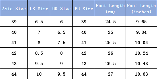Refer to the size chart for best fit. For wider or higher instep feet, consider choosing one size up.