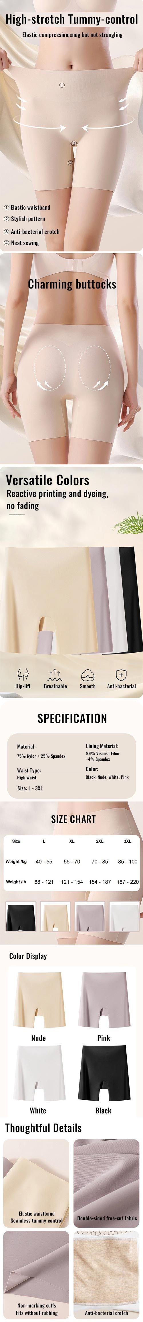 Women High-waist Ice Silk Underwear with Tummy-control Hip-lifting