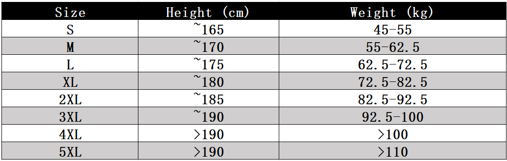 Size Chart (S-5XL)